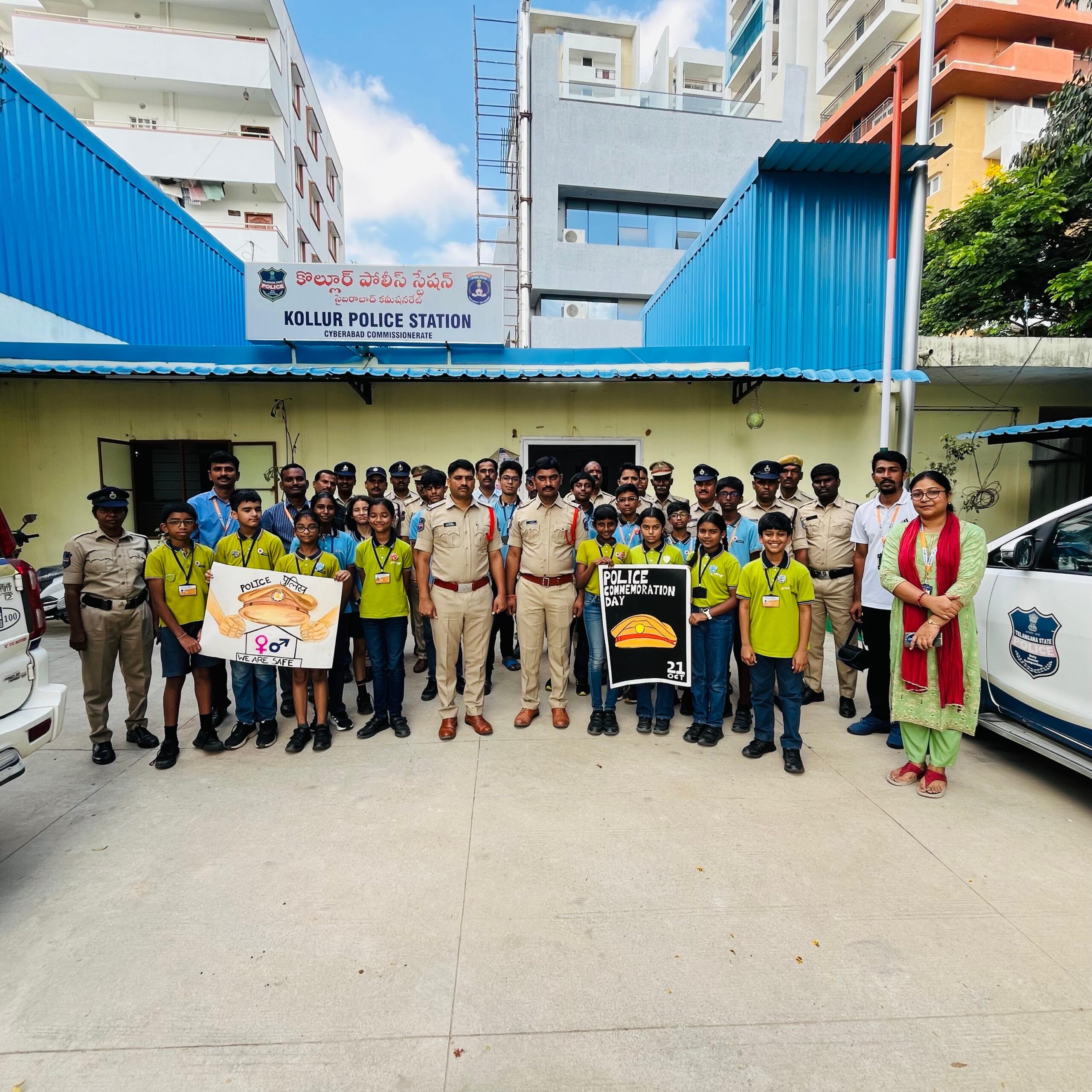 In addition, the students participated in a solemn ceremony commemorating police personnel who have lost their lives in service. The visit included tours of the Kollur Police Station and the RC Puram Traffic Police Station, where students learned about daily police operations, from maintaining law and order to traffic management. The police personnel of Kollur Police Station had also arranged gifts to the students as a token of affection they have towards the young souls.
