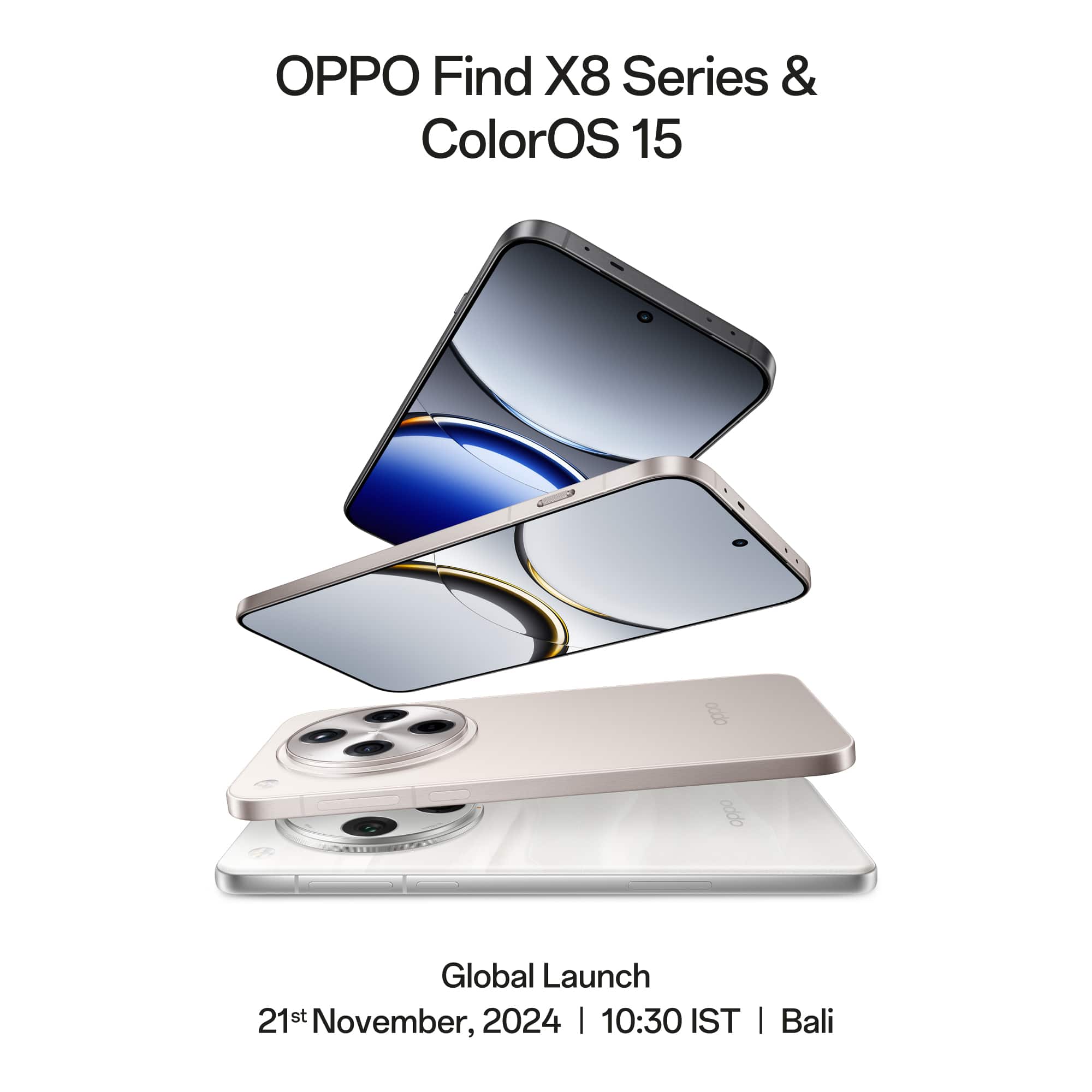 OPPO India will launch the Find X8 Series and ColorOS 15 at a global event on November 21, 2024, in Bali, Indonesia. Both devices-the all-new Find X8 and Find X8 Pro-redefine excellence in flagship smartphones.