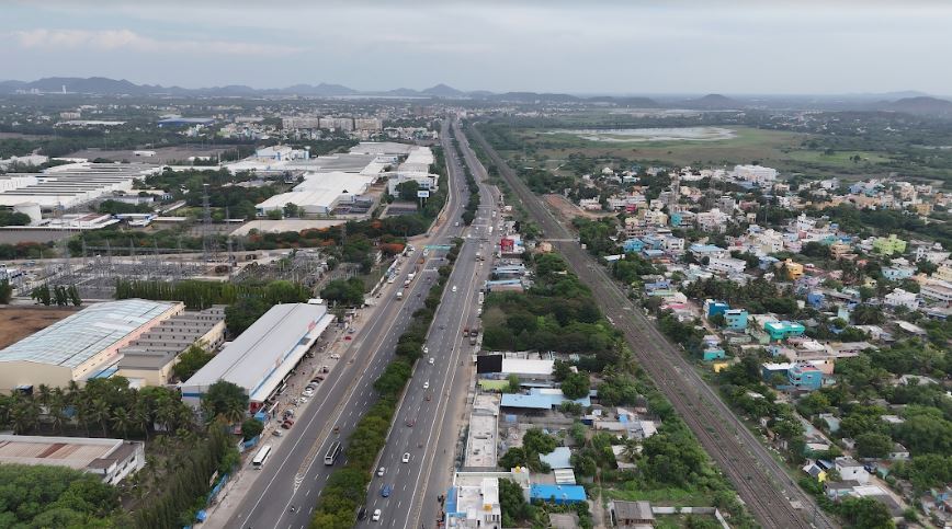Aerial view of GST Road, which is poised for rapid development and significant growth