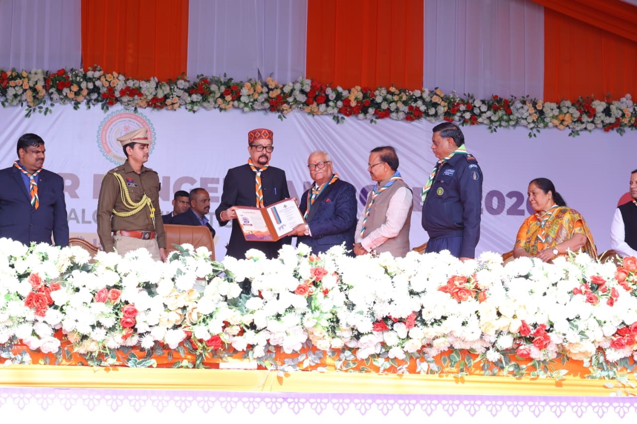 This prestigious award was presented by the Hon’ble Governor, Shri Ramen Deka, who was the Chief Guest at the inaugural ceremony of the Jamboree. Shri Naresh Kaushal was honoured for his lifelong dedication to the Scout–Guide Movement, his significant contribution to youth character building, and his role in promoting the values of service, discipline, and nation-building through journalism.